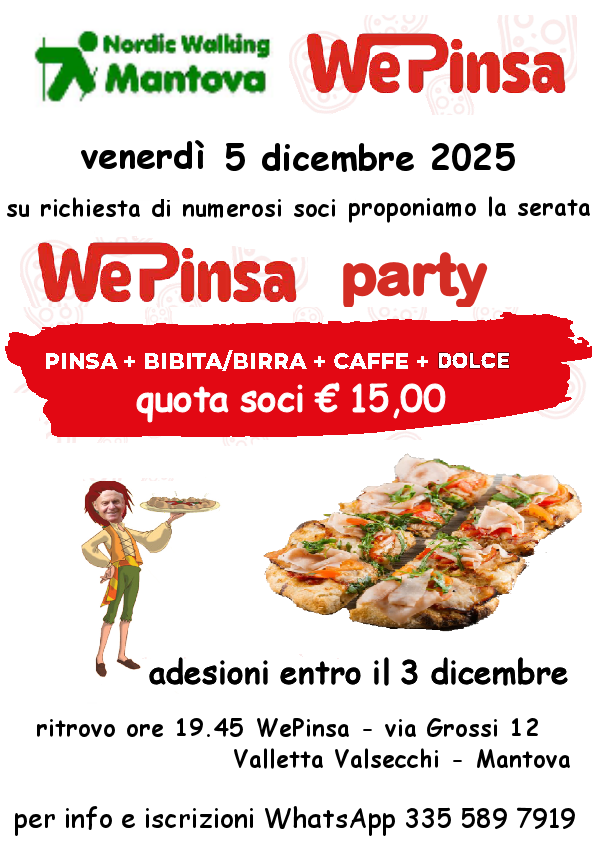 Con l'adesione alla nostra associazione potrai diventare partecipe di tutti quegli eventi che verranno organizzati nell'anno corrente. Essere soci asd NORDIC WALKING MANTOVA vuol dire soprattutto credere in quello che in questi anni abbiamo fatto per il benessere delle persone ed aiutarci a continuare a farlo. Il costo annuale della tessera 2025 è di 25,00 €. Rivolgiti al tuo istruttore per le modalità di versamento. oppure bonifico sul nostro cc codice IBAN CC MPS IT 26 H 01030 11503 000010335436. Il Presidente Comini Luciano